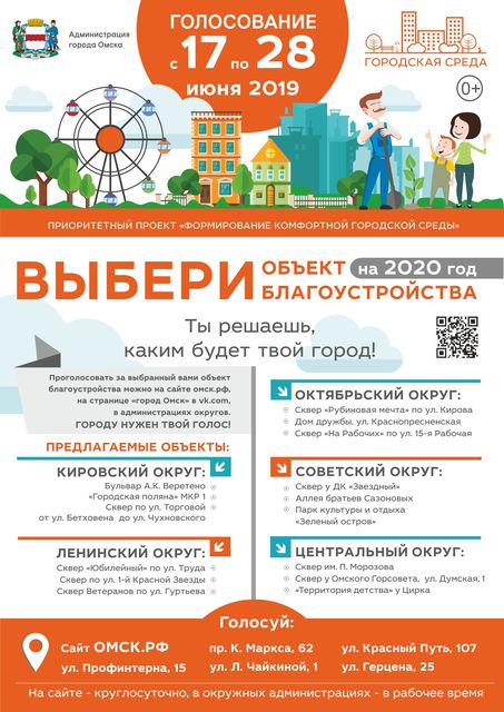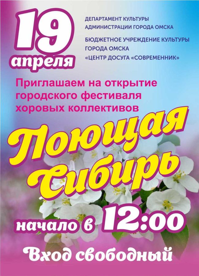 26.07.2019 года — праздничная концертная программа «С праздником, любимый город!» (место проведения: мрк. «Осташково», ул. Осташковская, д.16,18,20) 1.08.2019 года — праздничная концертная программа «Театральный Омск» (место проведения: ул. Пономаренко,2)