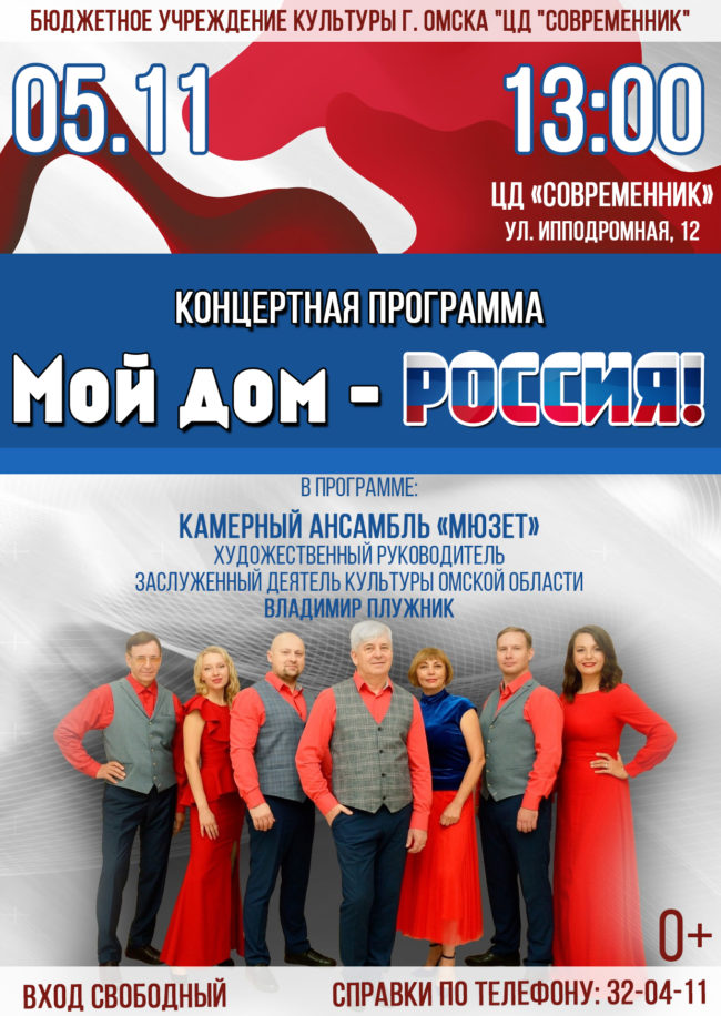 В ГОД СЕМЬИ особое значение приобретает праздник «ДЕНЬ СЕМЬИ , ЛЮБВИ И ВЕРНОСТИ» который наша страна отметит уже 8 июля! Мы приглашаем Вас друзья, Омичи и гости нашего города на концертную программу Камерного ансамбля «Мюзет» которая состоится 8 июля в 13.00 в ЦЕНТРЕ ДОСУГА «СОВРЕМЕННИК»! ВХОД СВОБОДНЫЙ!