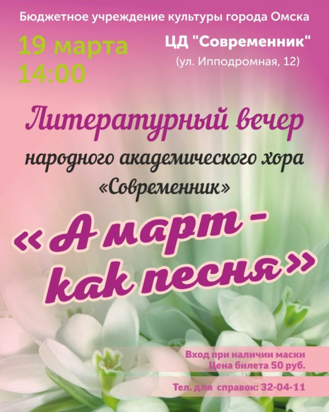 19 марта — Литературный вечер «А март — как песня» Афиша, Мероприятия, ПраздникиАвтор: cds55redaktor15.03.2022