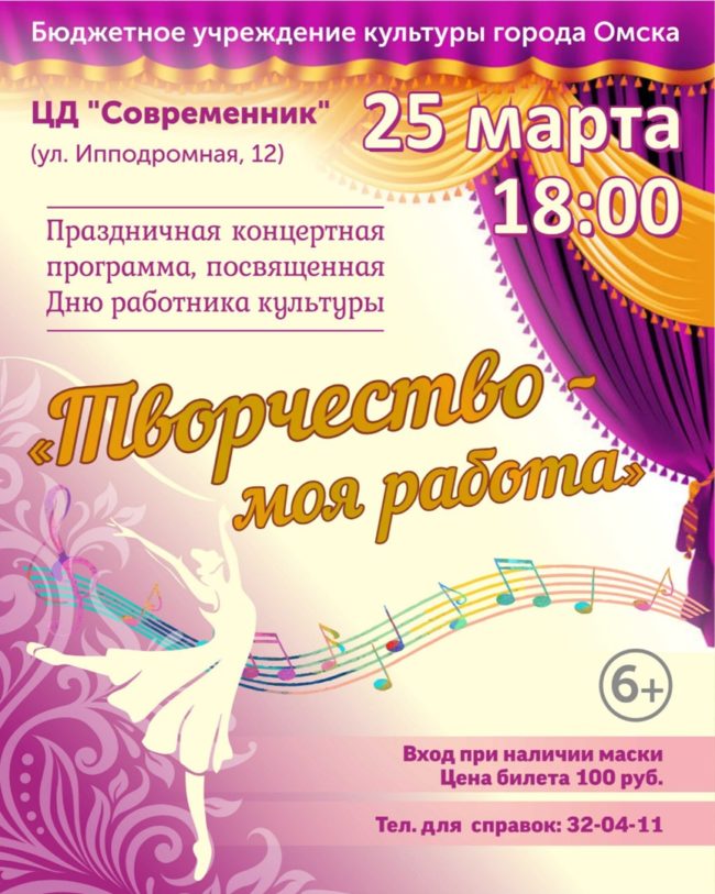 Праздничный концерт «Творчество — моя работа « Афиша, Коллективы, Мероприятия, ПраздникиАвтор: cds55redaktor21.03.2022
